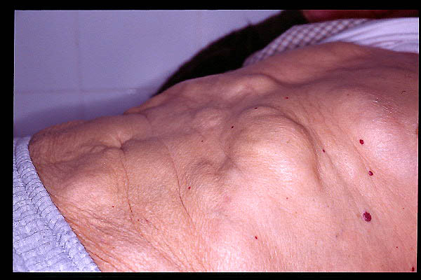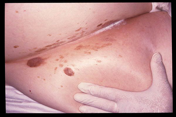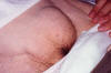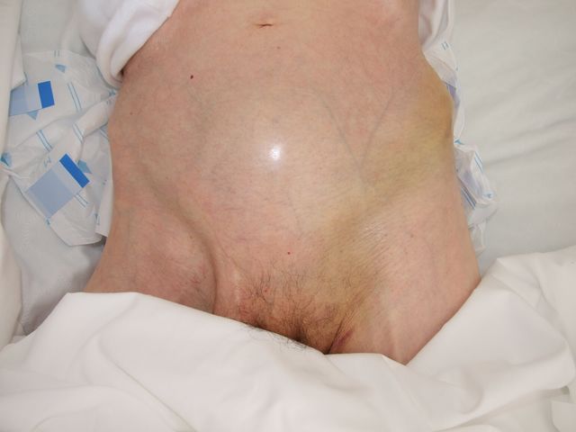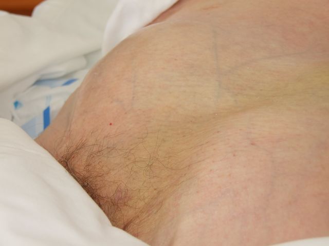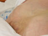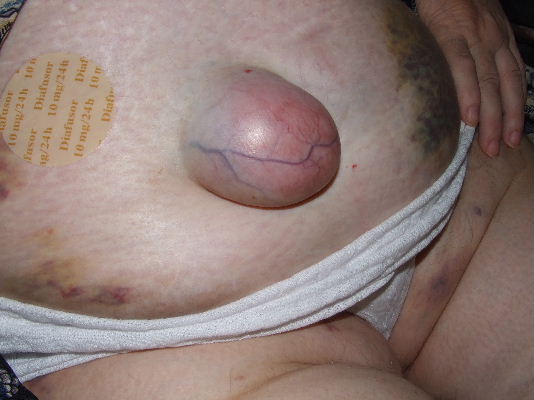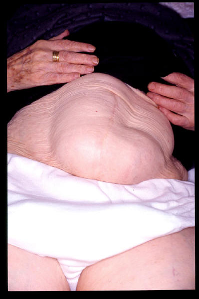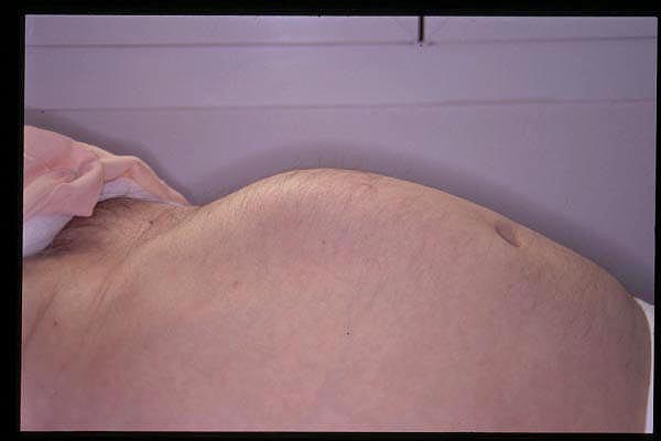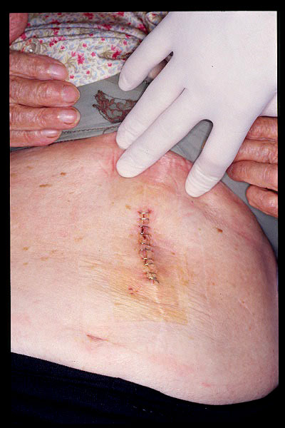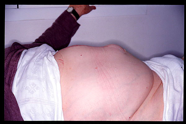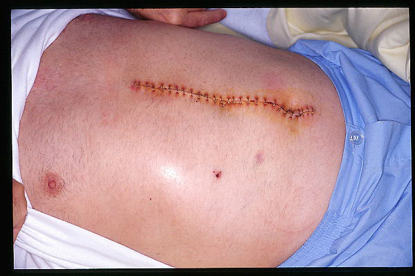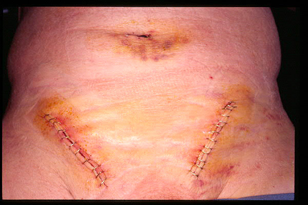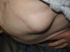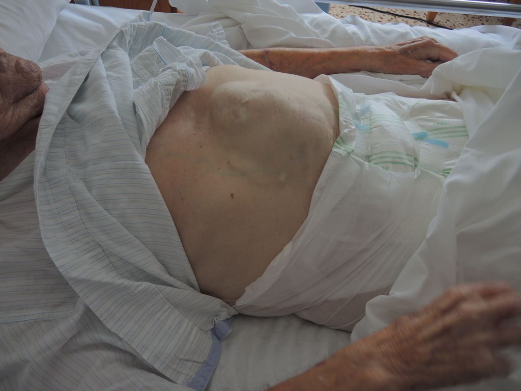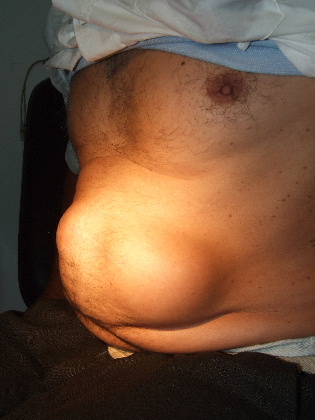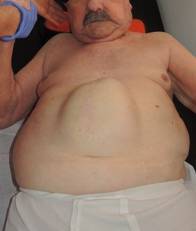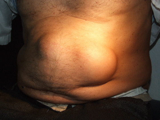Herniación abdominal lateral tras varias cirugías en la zona.