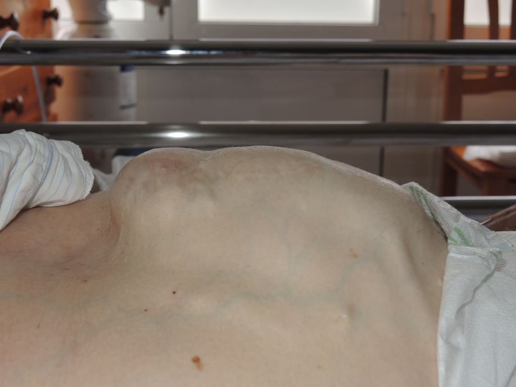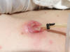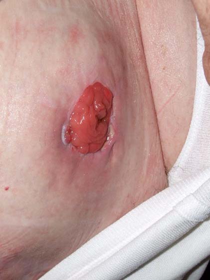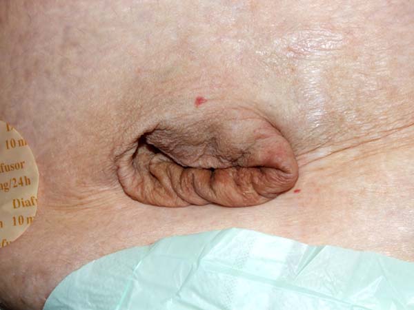 IQ colostomía de derivación por neo de colon no operable, sin bolsa. cura local previa a la utilización de platafoma.