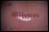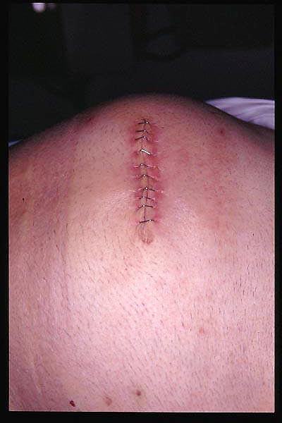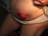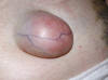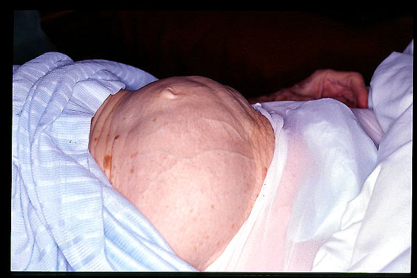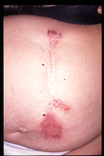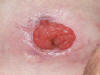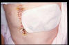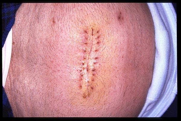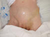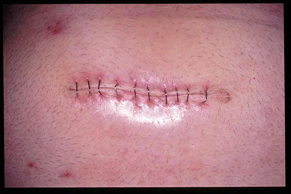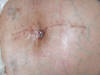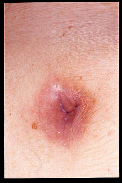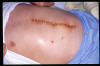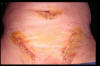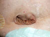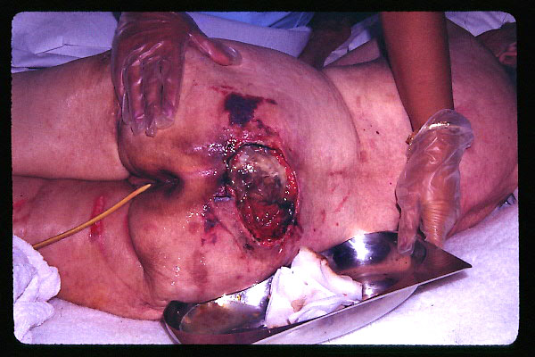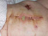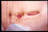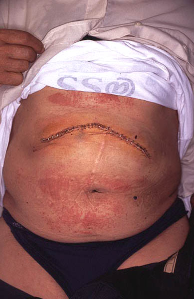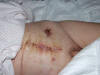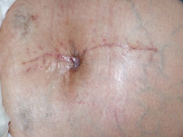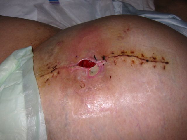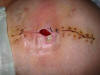 Deshiscencia de sutura abdominal en IQ por hernia umbilical gigante.