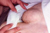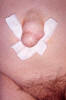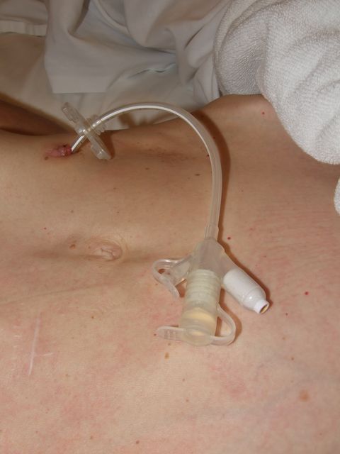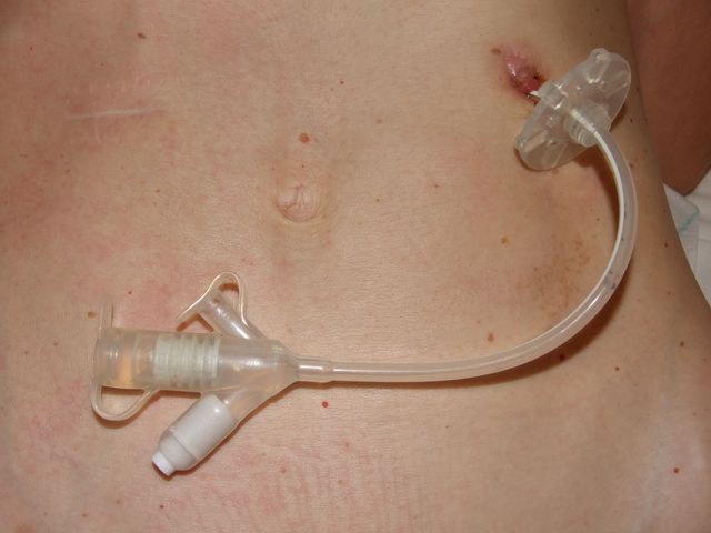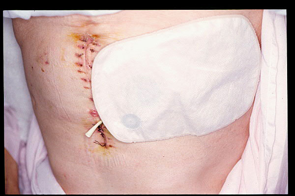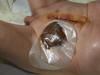 Bolsa de colostomía. Limpia. Cura recién hecha.