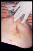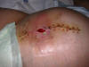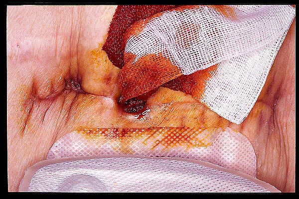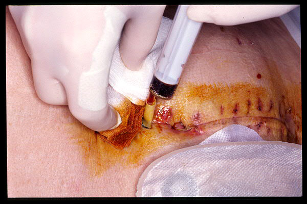 Dehiscencia de sutura tras hemicolectomía izquierda. Lavado con povidona. 2
