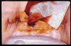 Dehiscencia de sutura tras hemicolectomía izquierda. Gasa insinuada con povidona.3