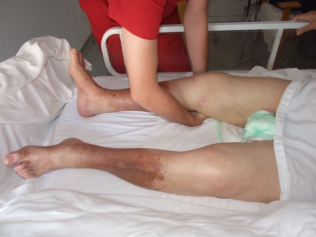 Fractura de cadera intervenida y dispuesta a la fisioterapia.