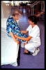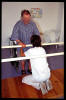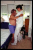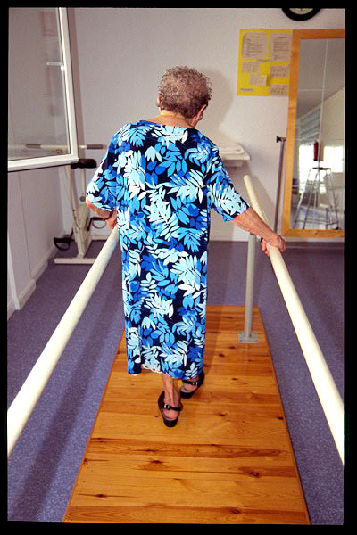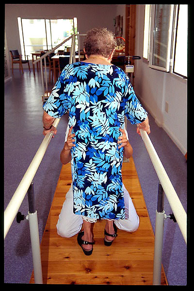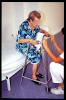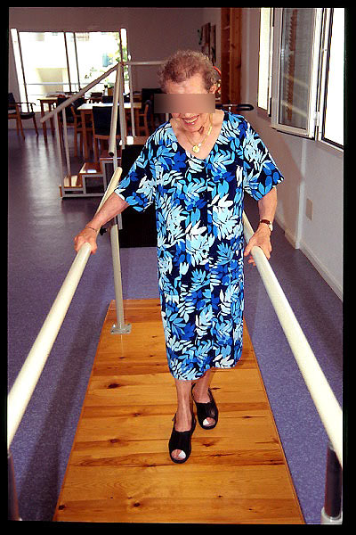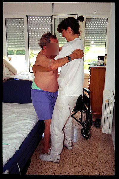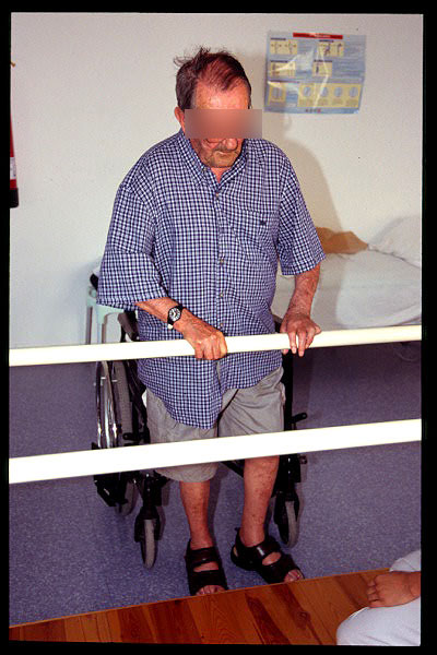 Paso de sedestación a bipedestación con ayuda de caminador.