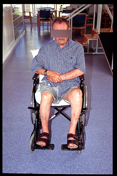 Sedestación en cama. Posición inicial de transferencia a silla.