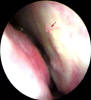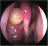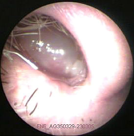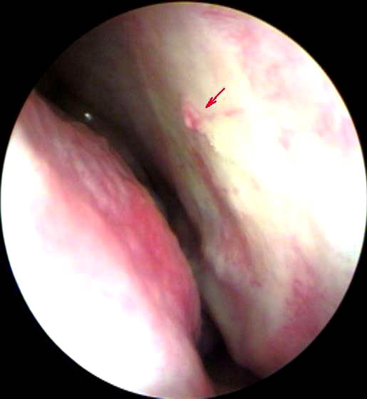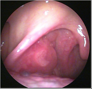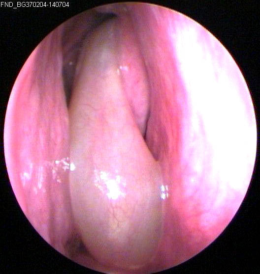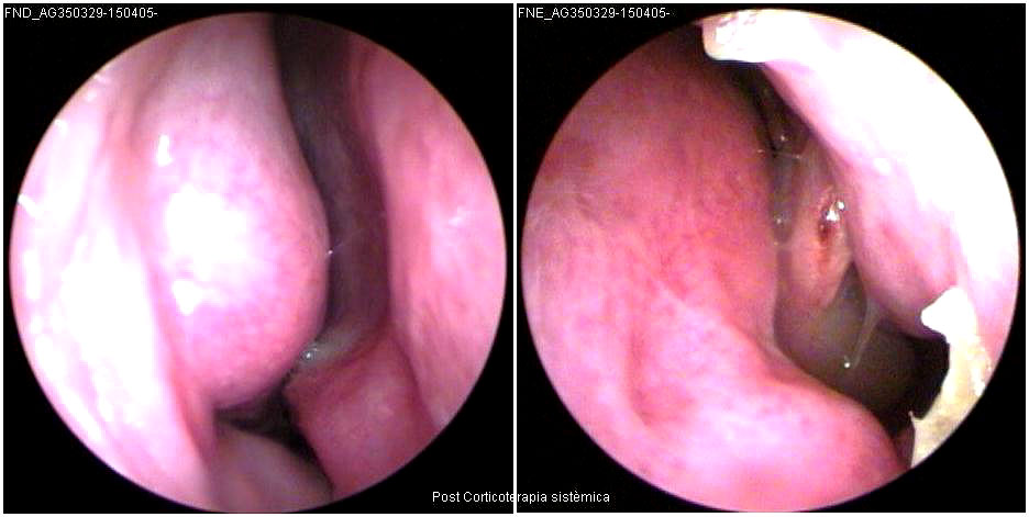JFC Rinosinusitis poliposa exteriorizándose por fosa nasal izquierda.