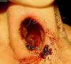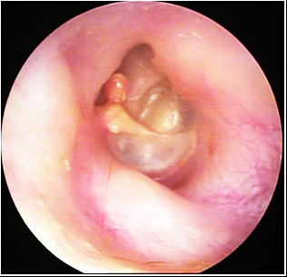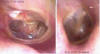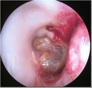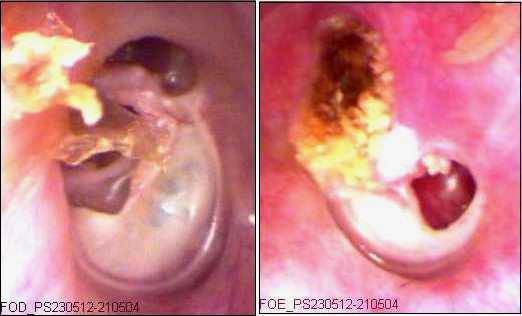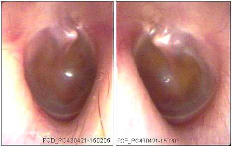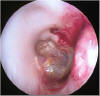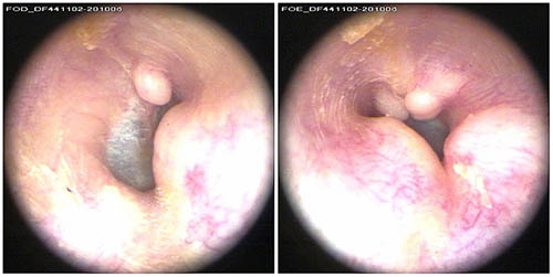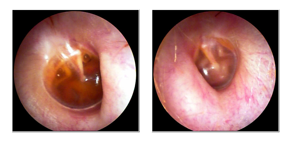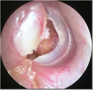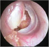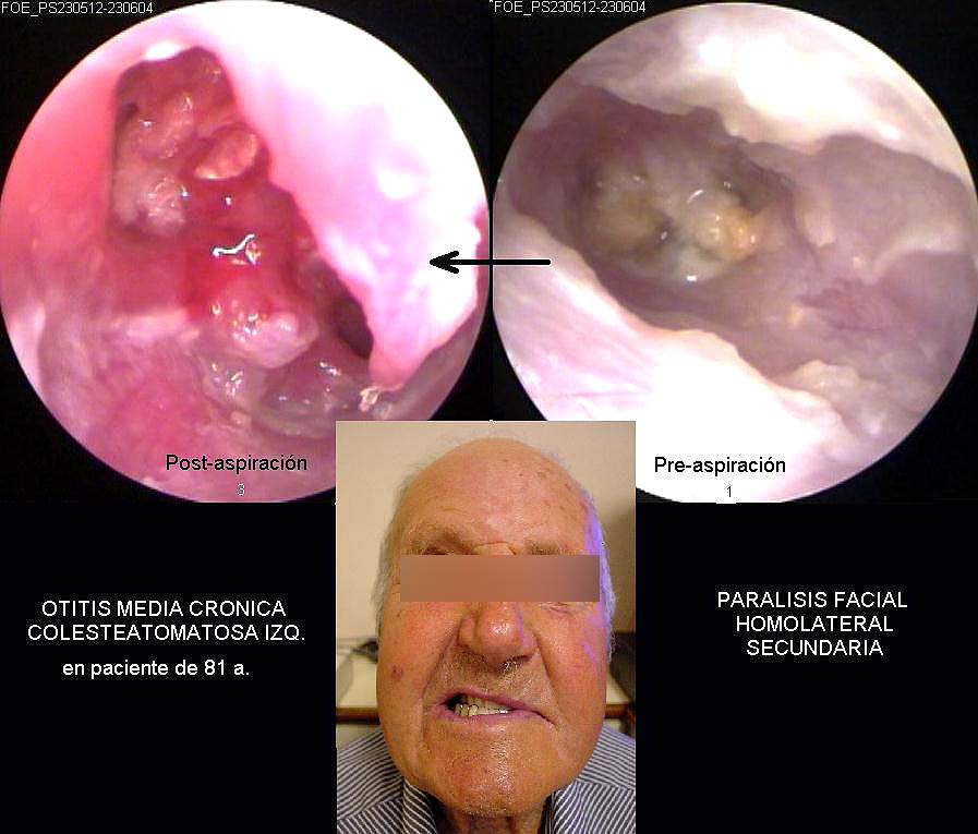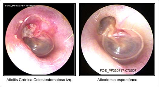 JFC otopatía supurativa crónica inactiva (der) y con colesteatoma atical (izq)