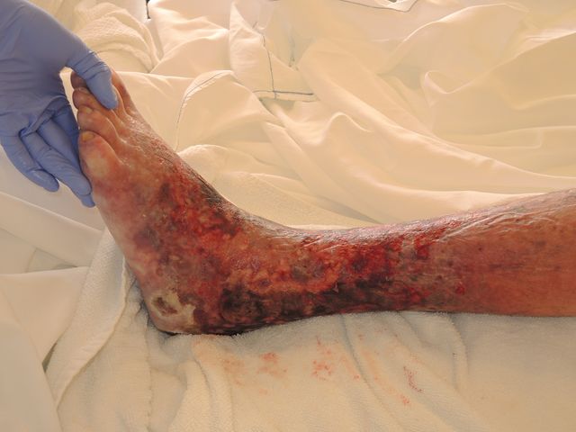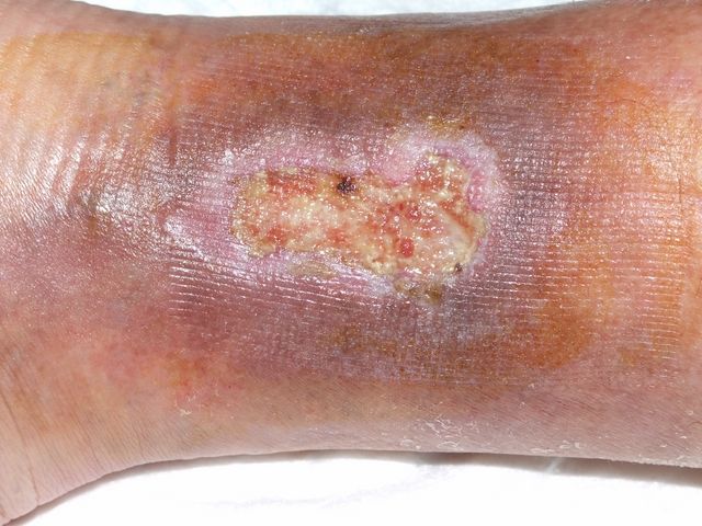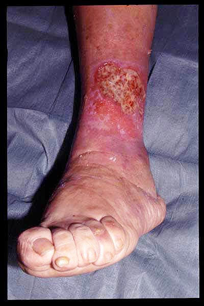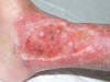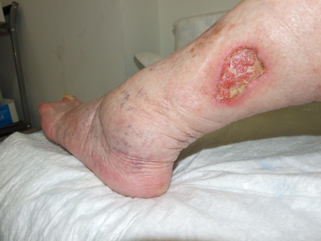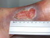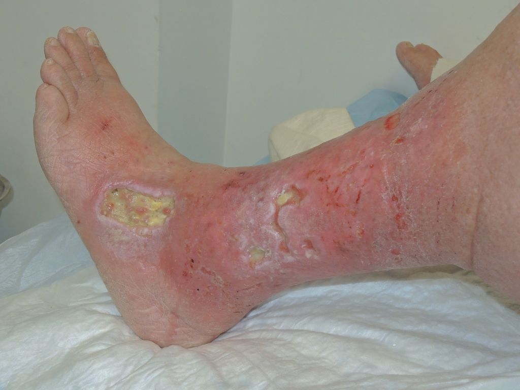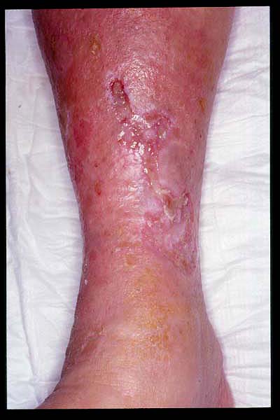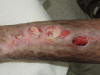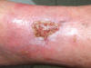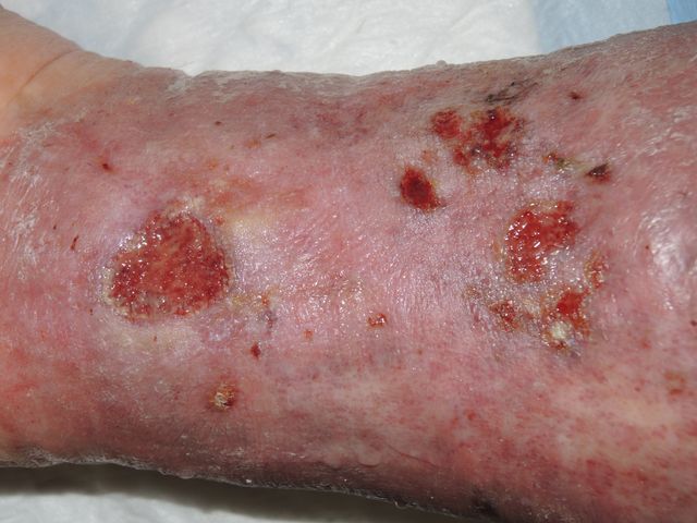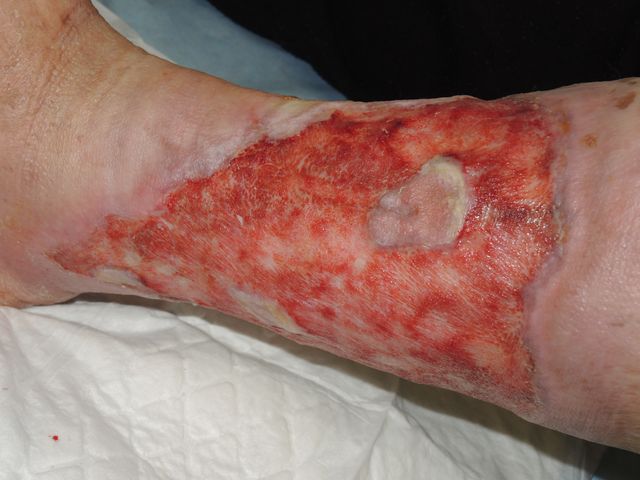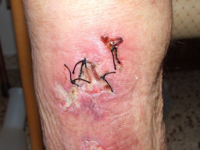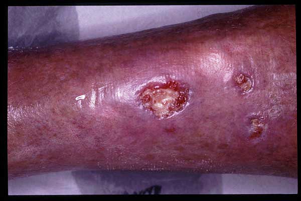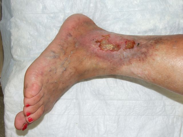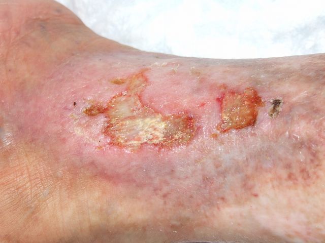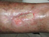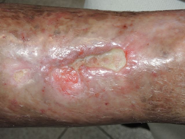 Degeneración cutánea sobre úlceras previas en insuficiencia vascular.