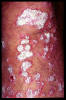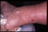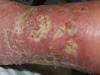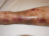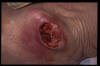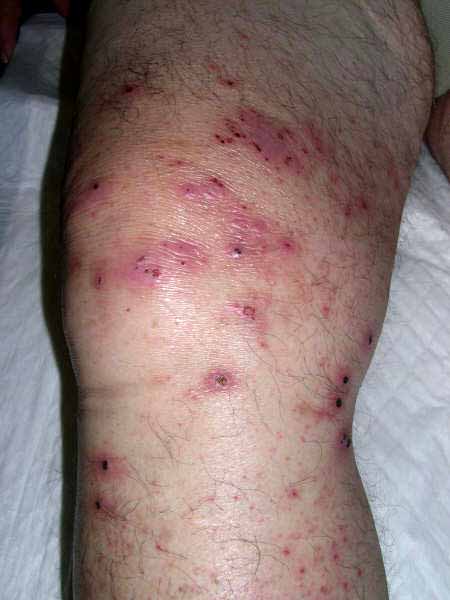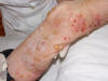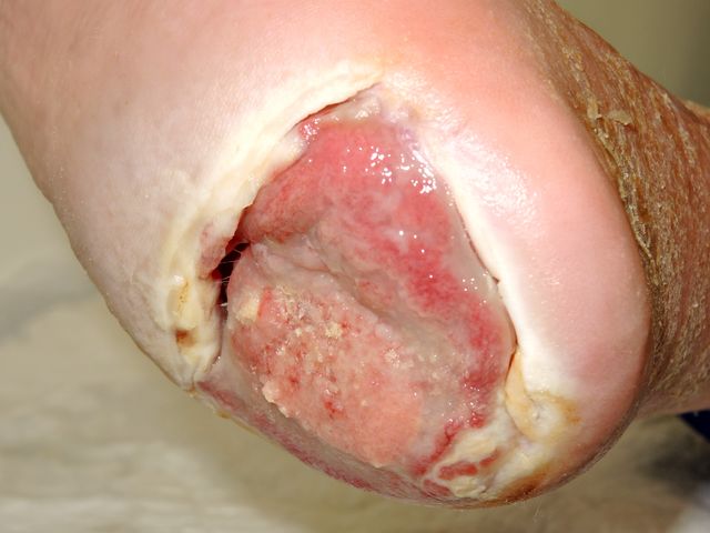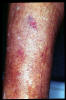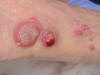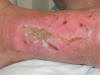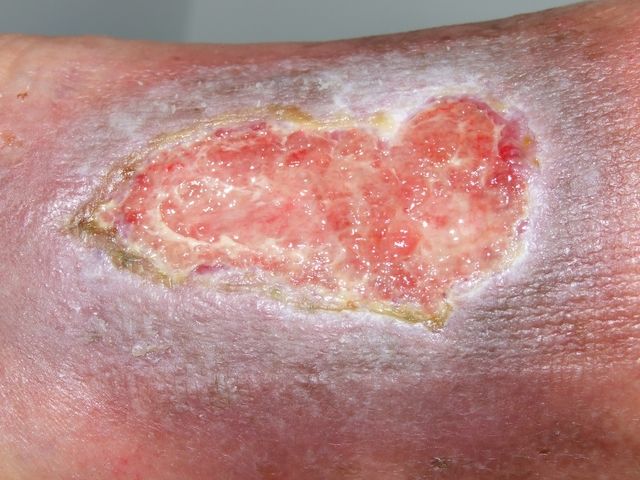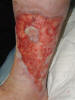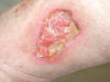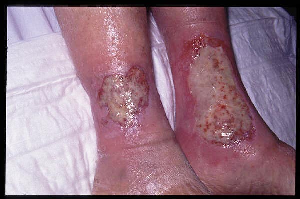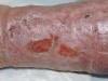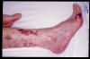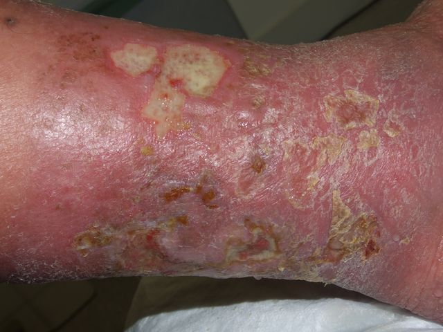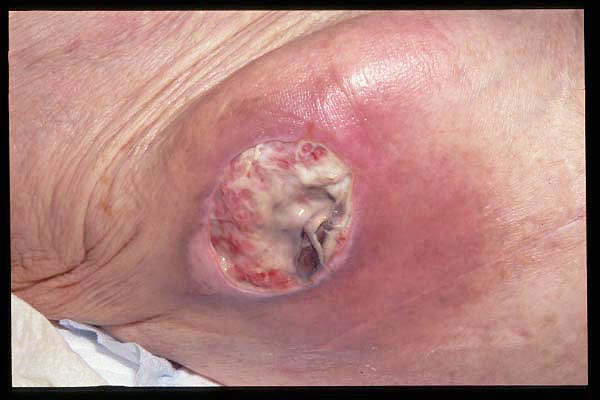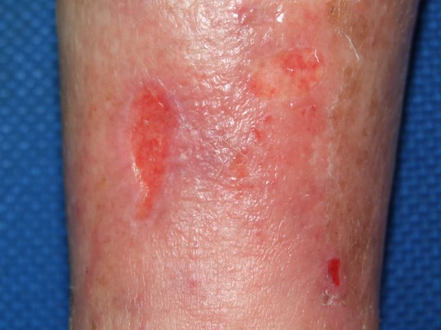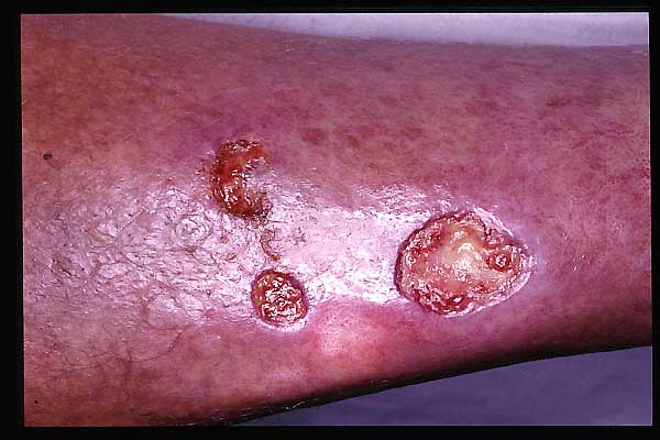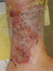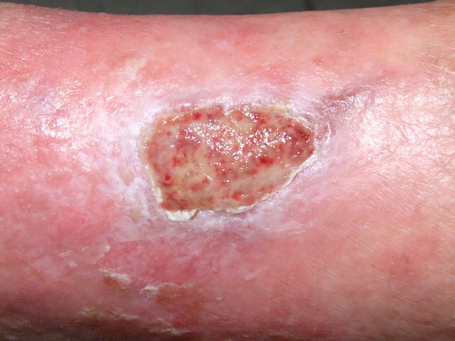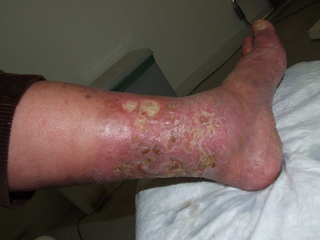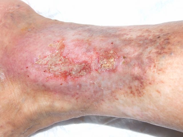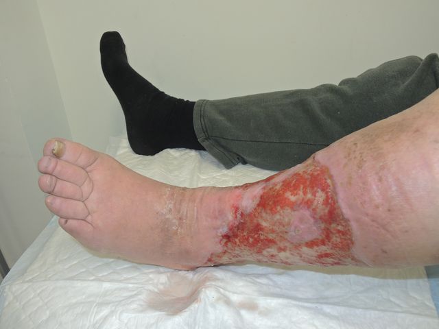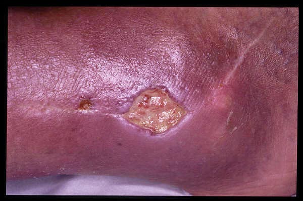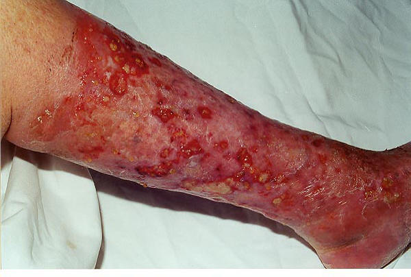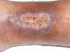 Degeneración cutánea sobre úlceras previas en insuficiencia vascular.