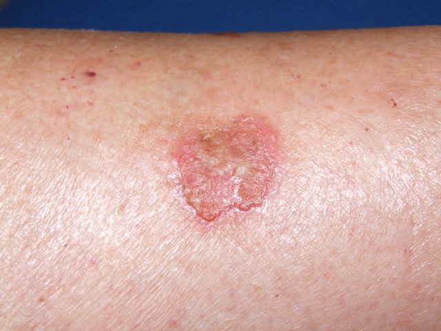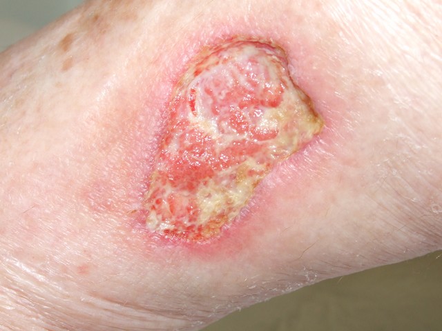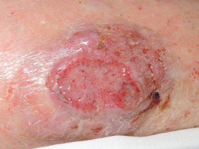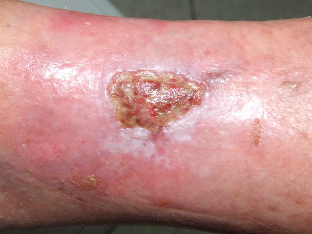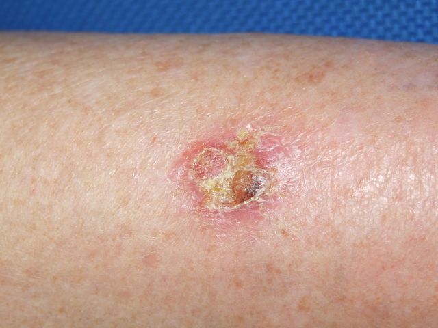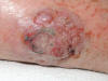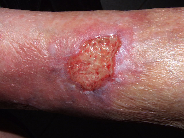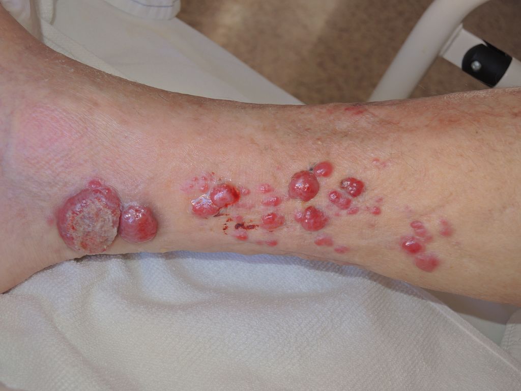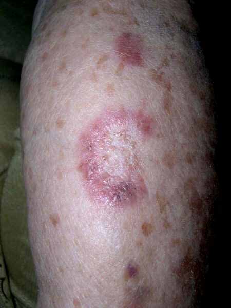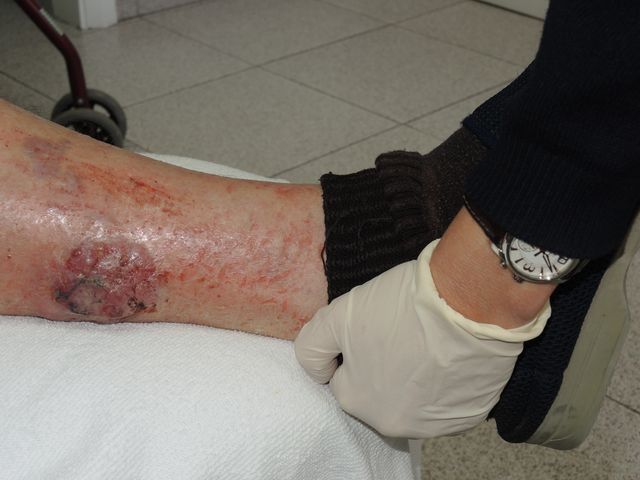 Epitelioma en pierna en tratamiento local con quimioterapia.