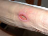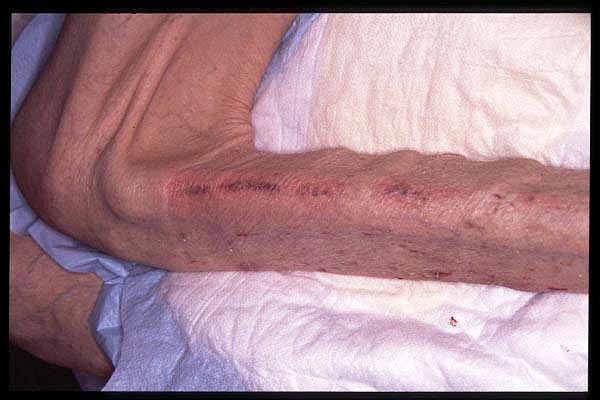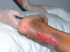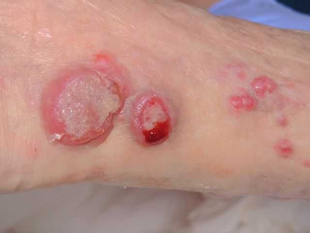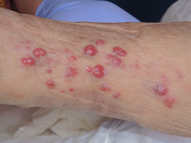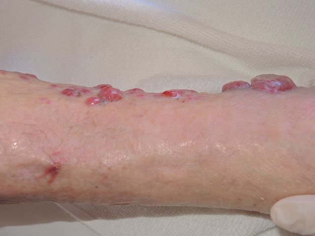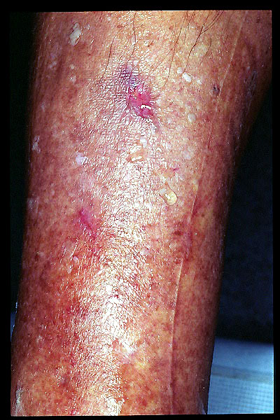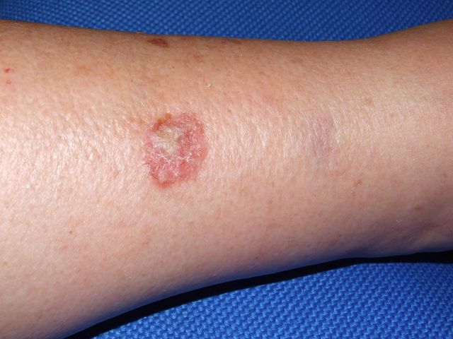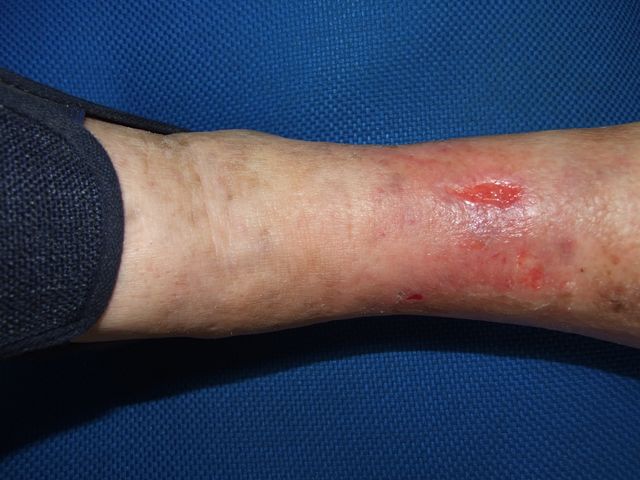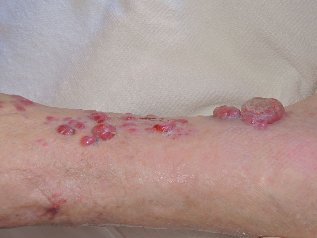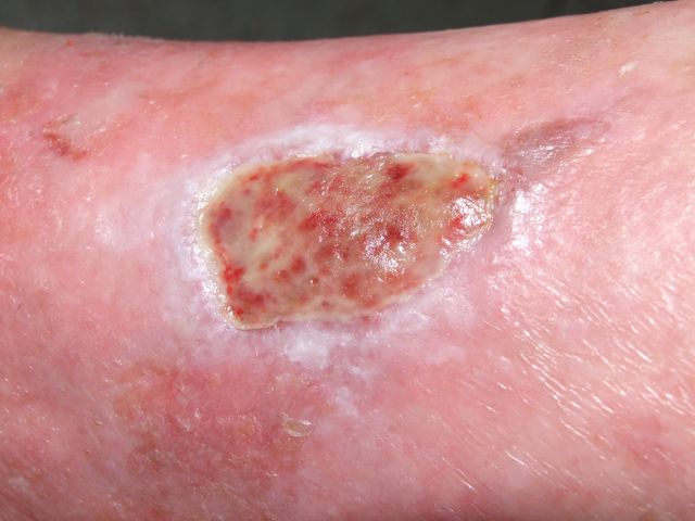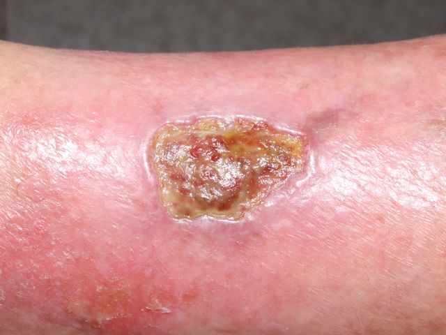 Epitelioma en pierna en tratamiento local con quimioterapia.