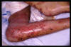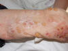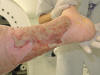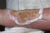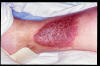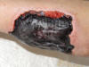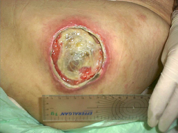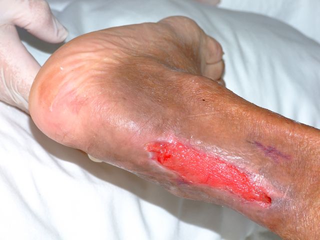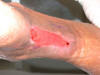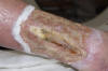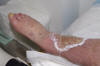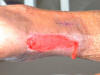 Pérdida cutánea cronificada por quemadura. Distintos grados evolutivos hacia la epitelización. En tto con OHB.