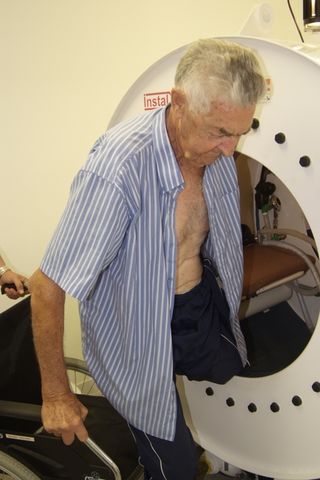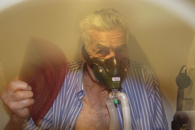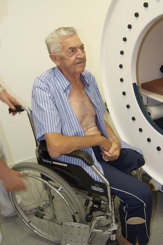 Anciano amputado de EII saliendo de cámara hiperbárica 3.