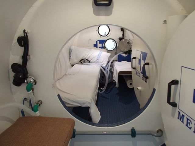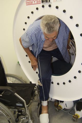 Anciano amputado de EII saliendo de cámara hiperbárica 1.