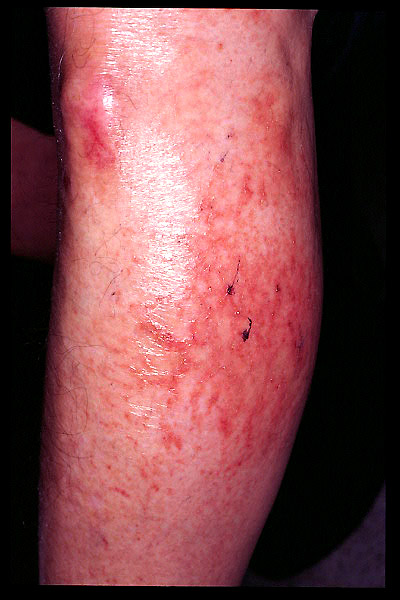 UPP de primer grado en cresta tibial por vendaje elástico.