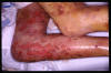 Pérdida amplia de piel por ulceración mixta arterial y venosa. En tto con oxigenoterapia hiperbárica. Evolución 1.