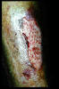 Evolución tórpida y fibrótica de úlcera crónica en tercio distal de pierna.